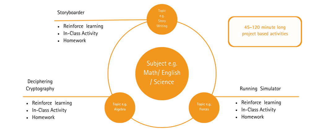 The TechReady program takes students on a progression of learning to apply their digital skills to solve real-world problems. Deeply connected with computing, digital citizenship, and cross-curricular learning opportunities, it includes 6 courses in various fields of technology such as Artificial Intelligence, Game Development and App Development. One course contains 3 units with 20 hours each and is always finished with a capstone project to make sure students are able to apply what they’ve learned.
